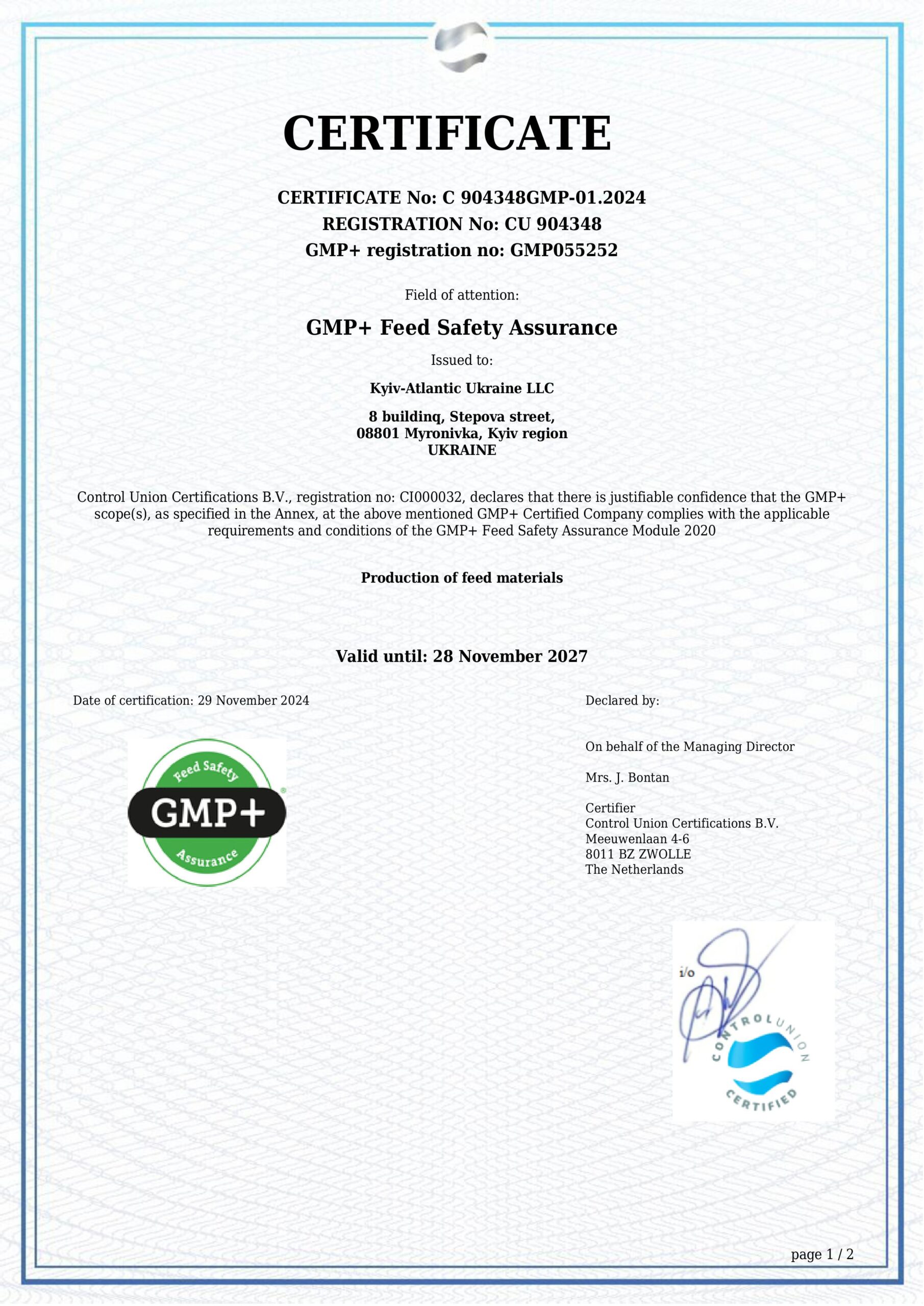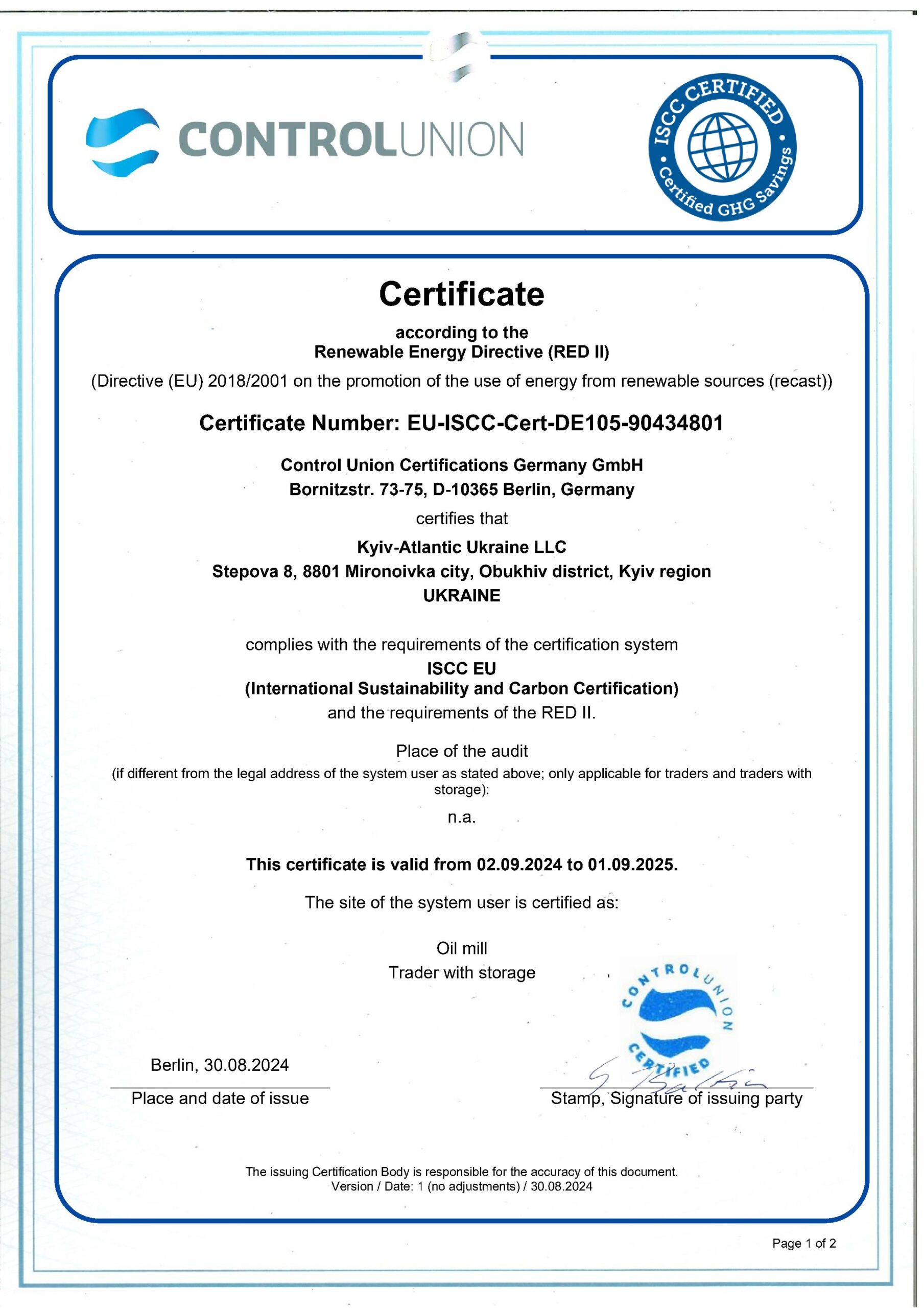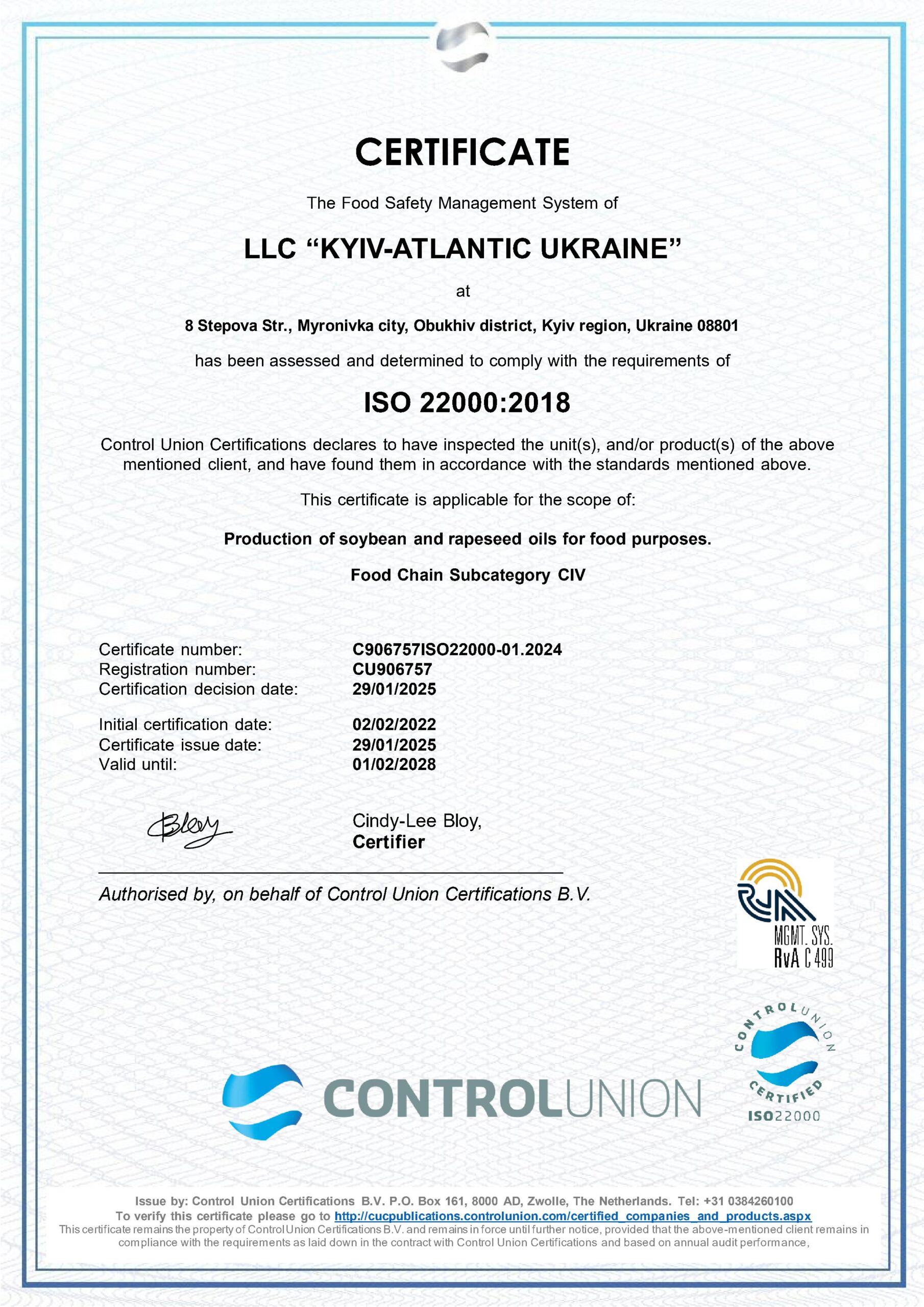 ТОВ “КИЇВ-АТЛАНТИК УКРАЇНА” пройшов сертифікацію за стандартами якості: